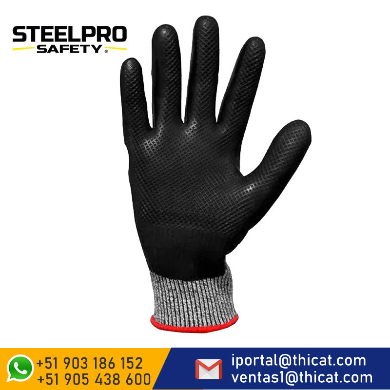 Guante Hecho de fibra HDPE 13 Gauge con palma de látex y proteccion contra impactos. Es un Guante diseñado para trabajos en ambientes agresivos, y con buena resistencia al corte.